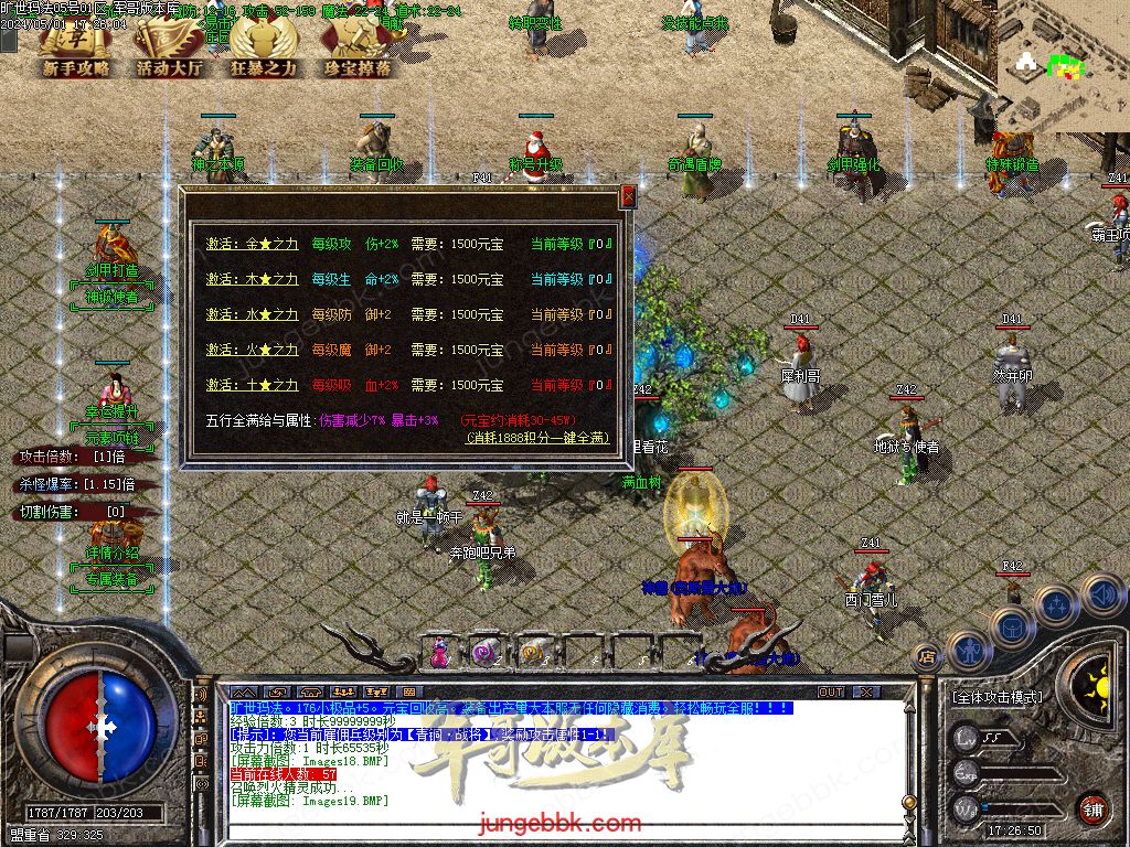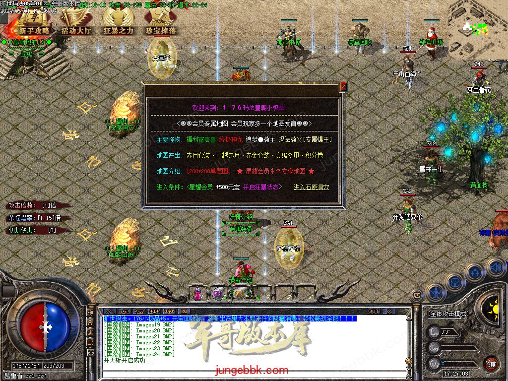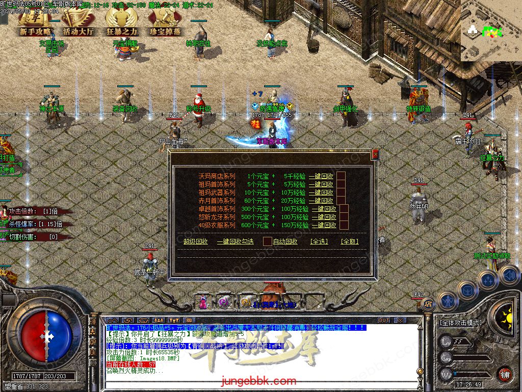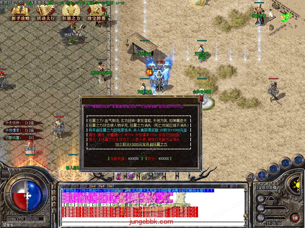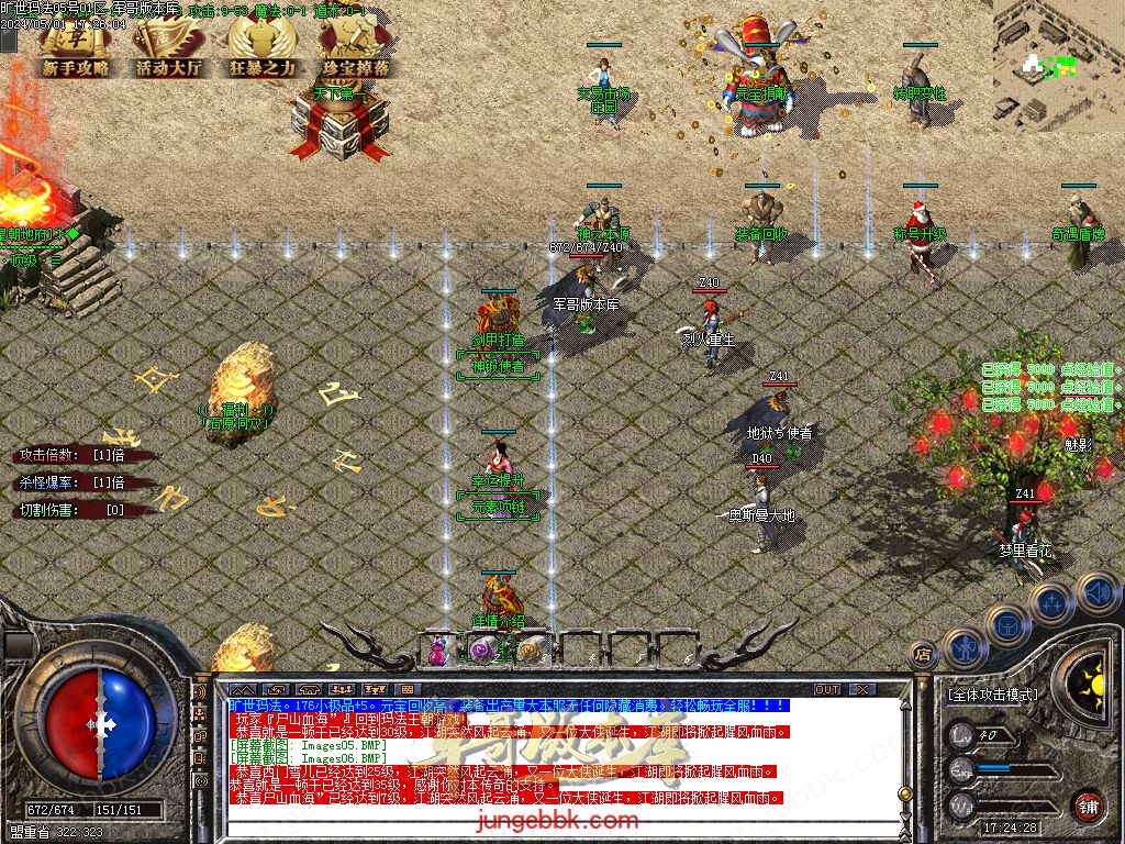 第一次集体攻沙在新区开放第2天中午合区,删除49级以下角色,晚上8点举行!拿沙奖励具体查看攻城管理详情,以及狂暴元宝奖池