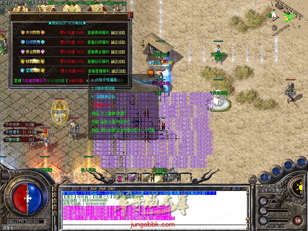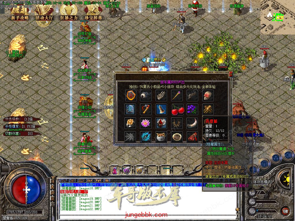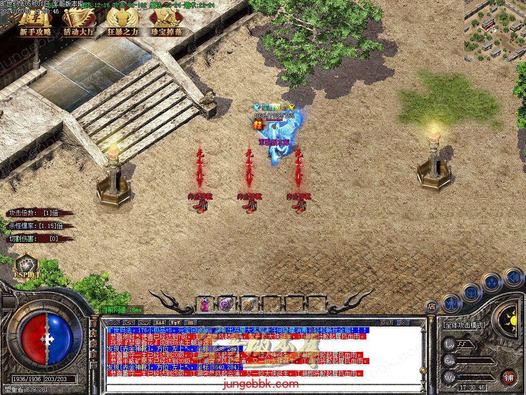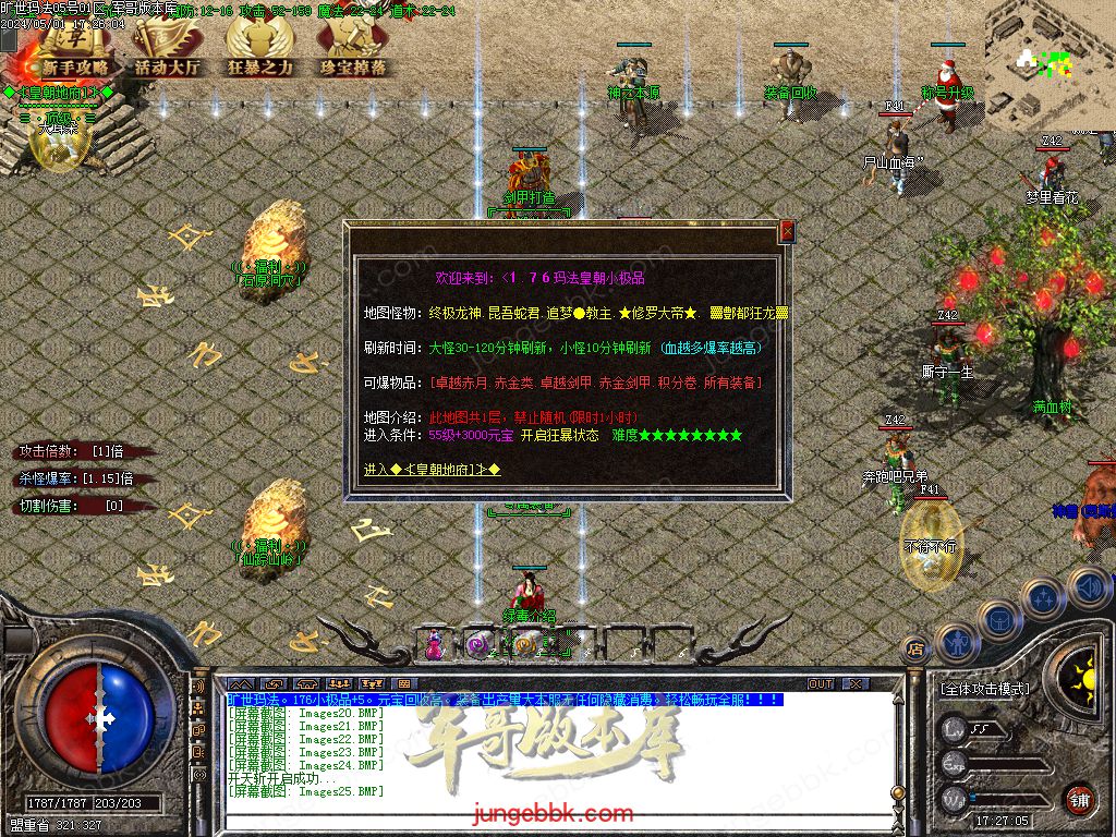 本服多达几十张打宝地图,每张地图都刷新大BOSS爆本服所有装备,难度较大请组队前往探索!